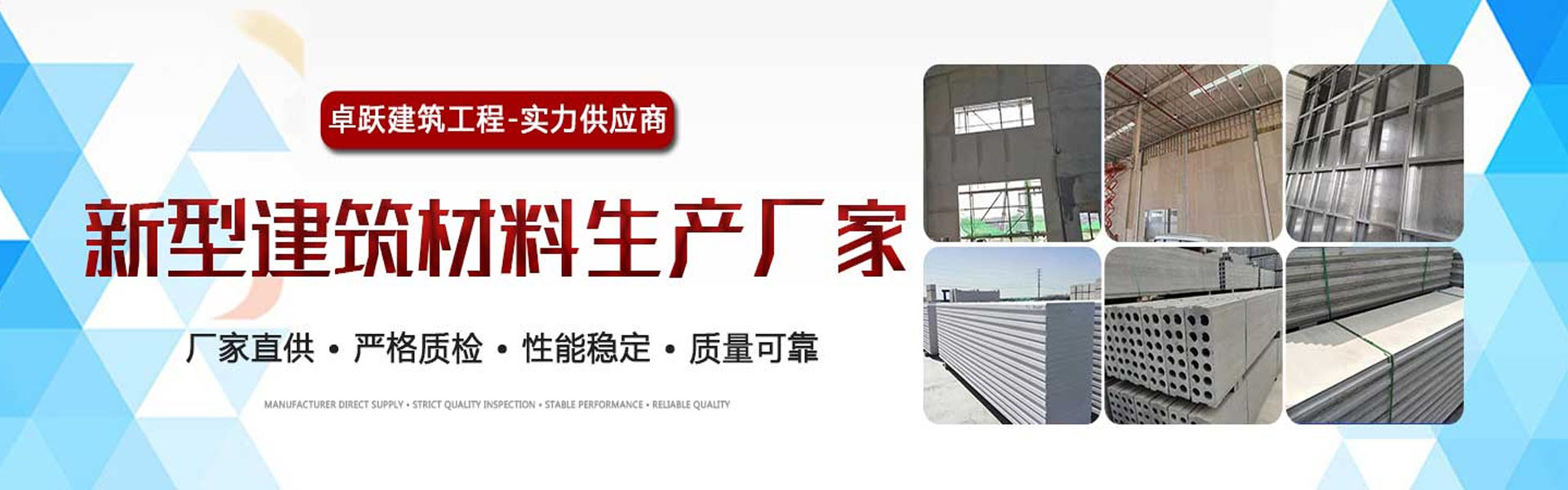 濟南卓躍建筑工程有限公司是一家從事新型節能環保建筑墻體材料的研究、開發、生產、銷售、安裝為一體的多元化建材企業。從事新型建材、聚苯顆粒輕質隔墻板、硅酸鈣板輕質復合墻板、輕質隔墻板,蒸壓加氣混凝土墻板,空心板等綠色環保節能新型建材的研發、生產和銷售,并根據市場情況擬繼續擴大其投資規模和領域。公司以產品的人性化設計為特色,使公司產品廣泛應用于建筑領域中,成為行業有競爭力的新型建材企業之一。公司將立足于當代建材現代化發展前沿,依靠科技、勇于探索,以更好的產品、優良服務、與廣大用戶攜手共創輝煌。公司響應國家墻改政策,充分吸收國內外技術,成功研發了新型輕質墻板,公司實行標準化管理,嚴格控制產品質量,依靠過硬的產品質量的服務已得到廣大客戶的認可與信賴。公司產品遍布各大城市,與國內、國外多家客戶建立了良好的合作關系。公司始終以“客戶價值很大化”為宗旨,堅持“精益求精、誠而有信”的經營理念,致力于低碳...
